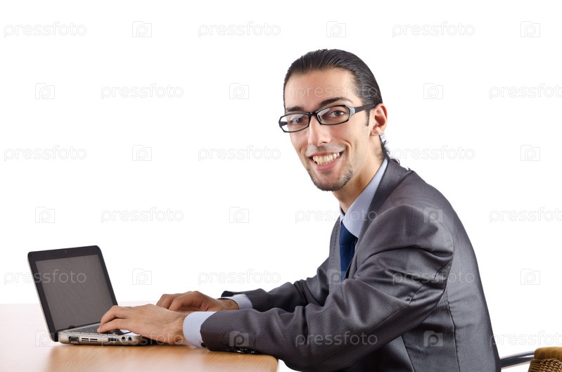 Бизнесмен работает на ноутбуке