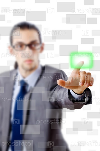 Бизнесмен, нажимающий на кнопку