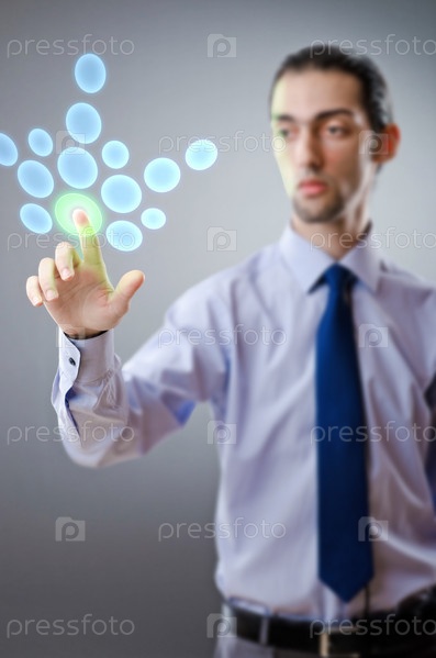 Бизнесмен, нажимающий на кнопку
