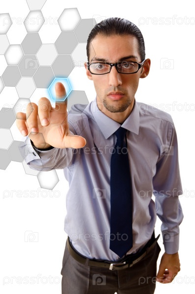 Бизнесмен, нажимающий на кнопку