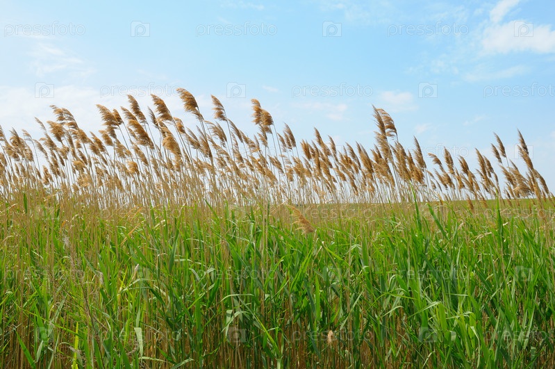 Заросли тростника на фоне голубого неба