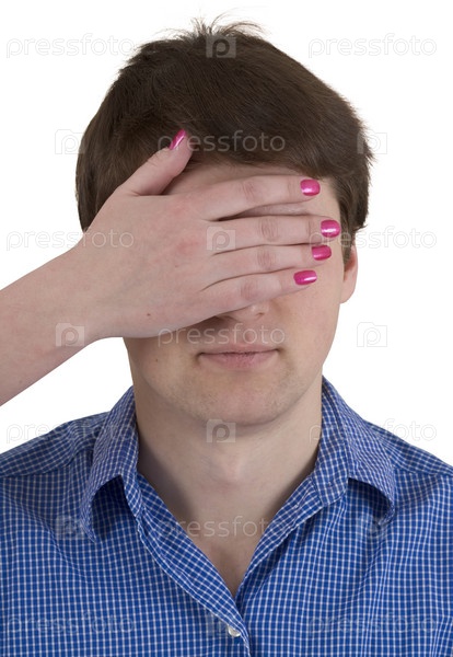 Мужчина с закрытыми глазами женские руки на белом