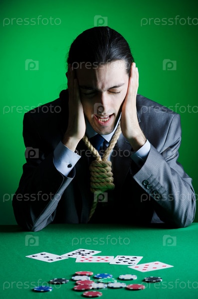 Молодой человек в казино с веревкой на шее