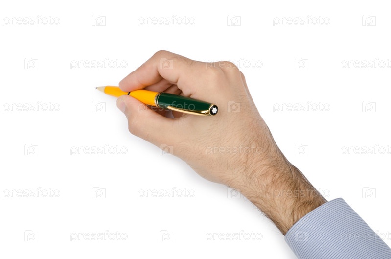 Рука мужчины с ручкой на белом фоне