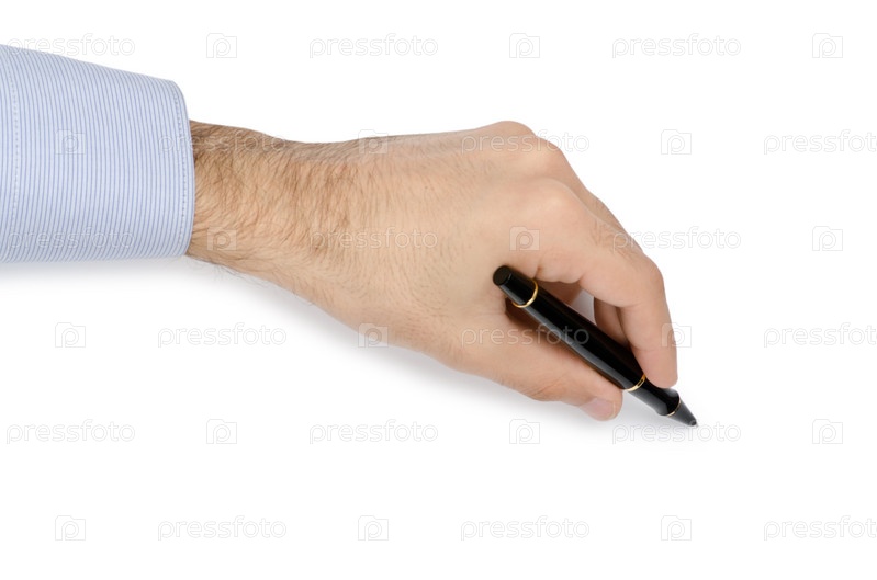 Рука мужчины с ручкой на белом фоне