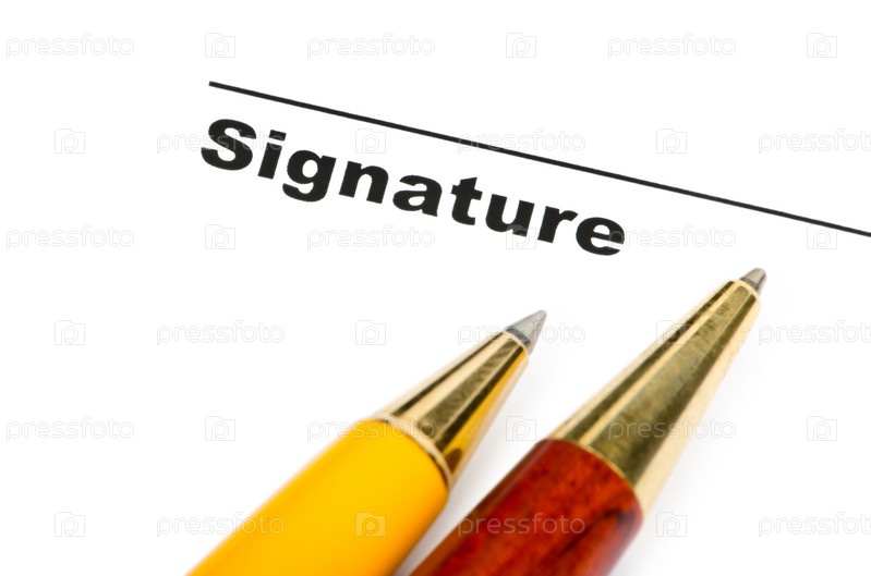 Перо и подпись на белом фоне