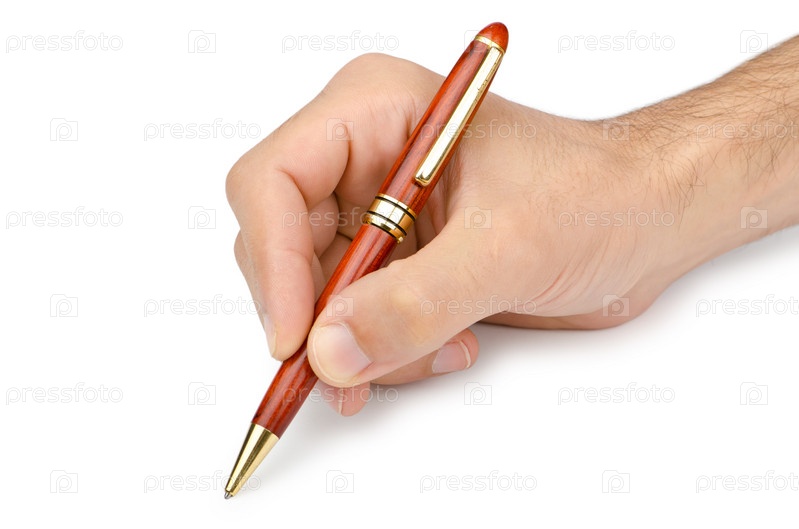 Ручка в руке на белом фоне