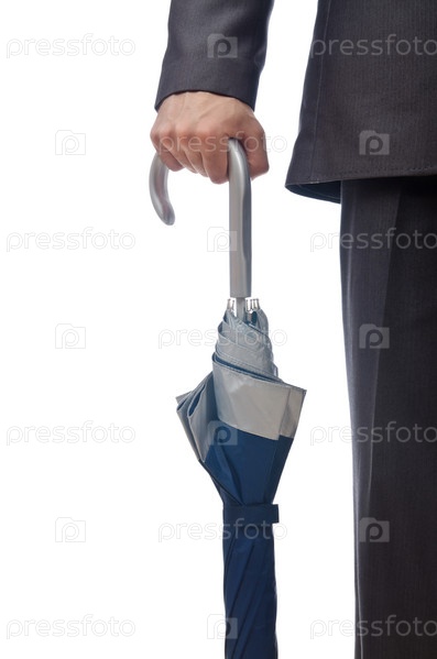 Человек с зонтиком на белом фоне