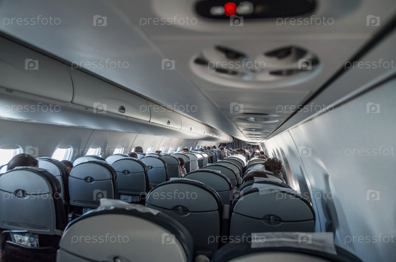 Интерьер самолета с пассажирами