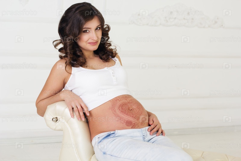 Беременная девушка с тату хной на животе