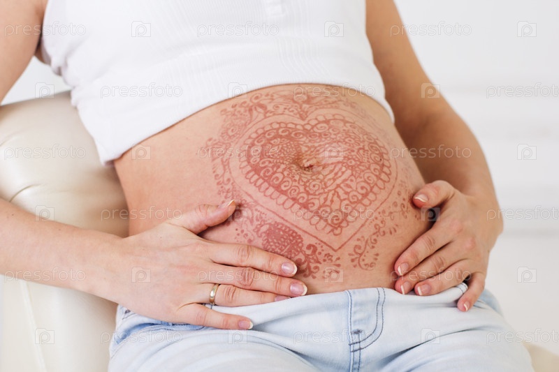 Беременный живот с татуировкой мехенди
