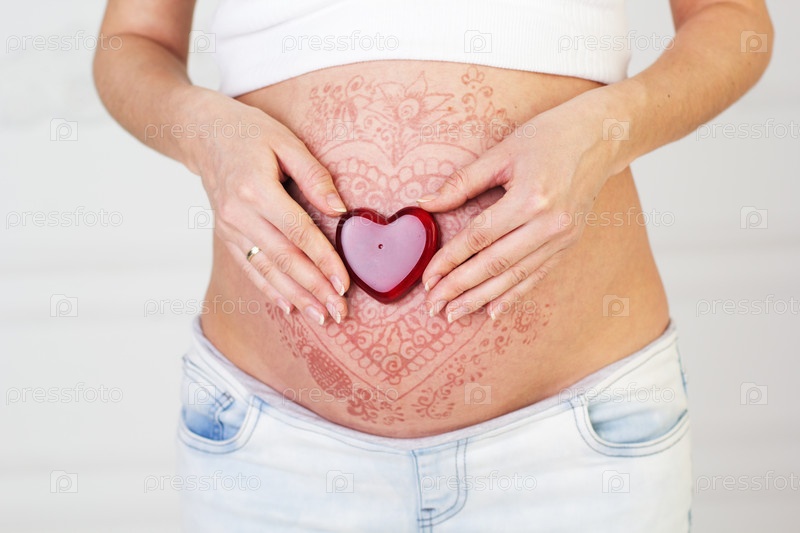 Беременный живот с татуировкой мехенди