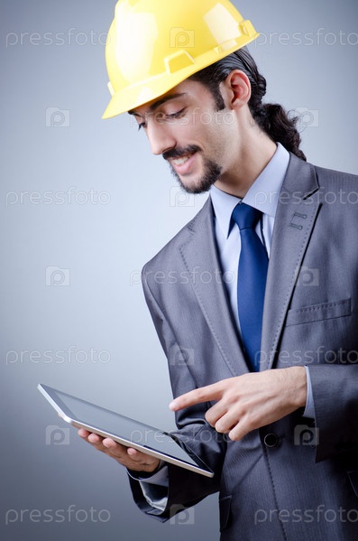 Молодой архитектор с планшетным компьютером
