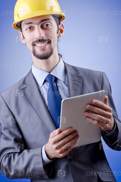 Молодой архитектор с планшетным компьютером