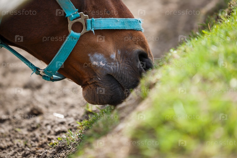 Лошадь ест траву