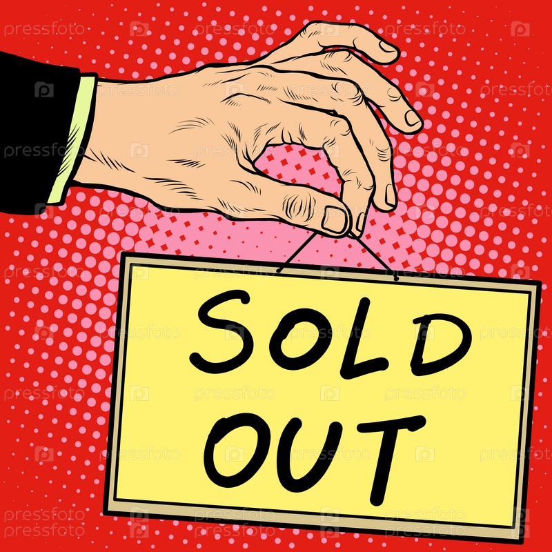 Рука с табличкой "продан"