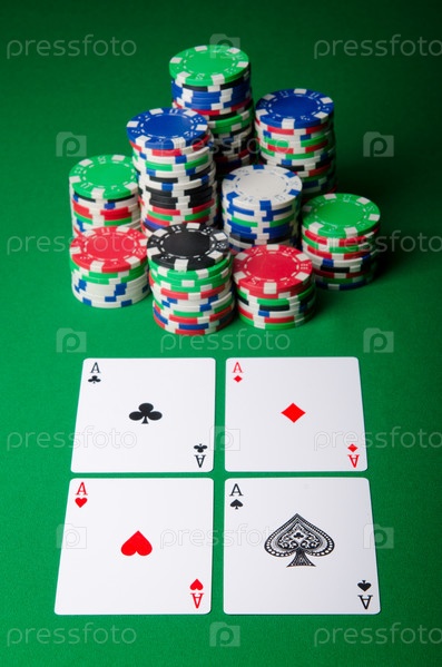 Игральные карты и фишки на зеленом сукне