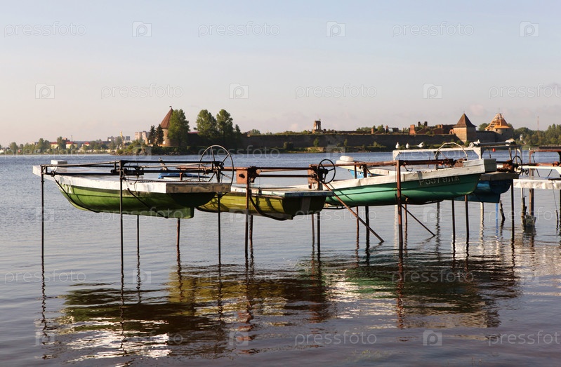Лодки на фоне крепости "Орешек". Шереметьевка. Ленинградская область