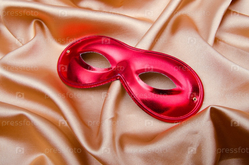 Театральная маска на фоне шелковой ткани
