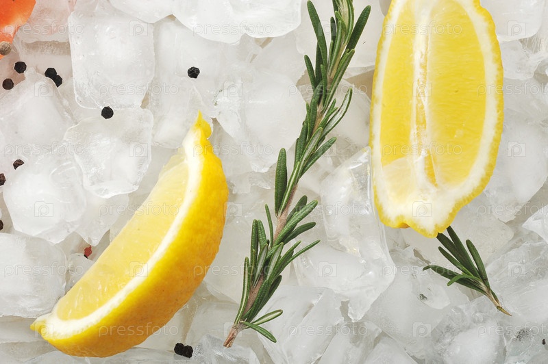Дольки лимона на кубиках льда