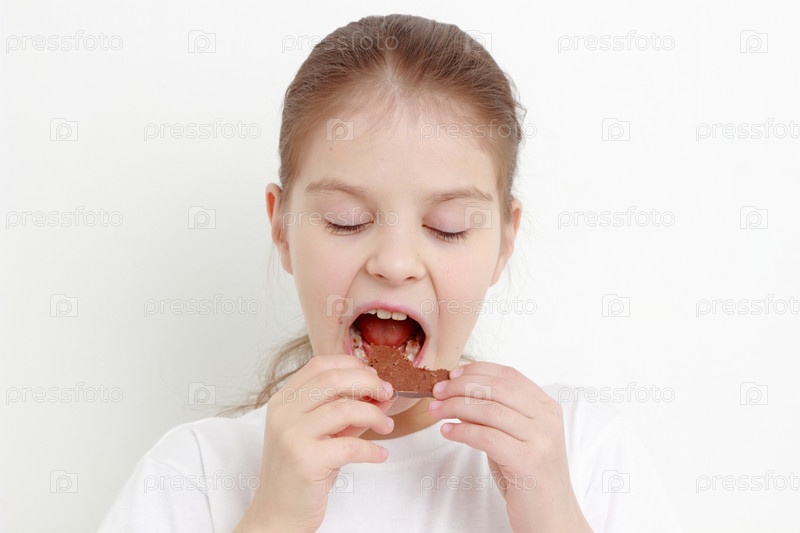 Маленькая девочка кушает шоколад