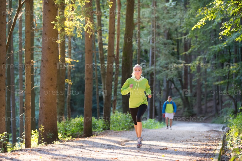 Девушка на пробежке в лесу