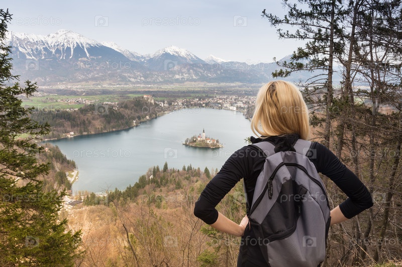 Девушка любуется видом с горы