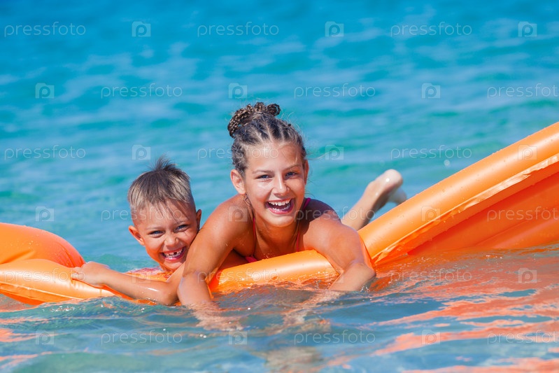 Дети играют в море