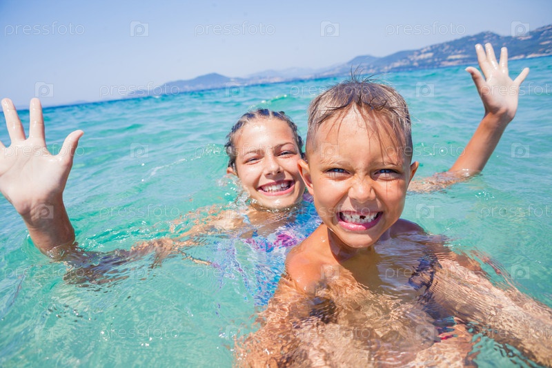 Дети играют в море