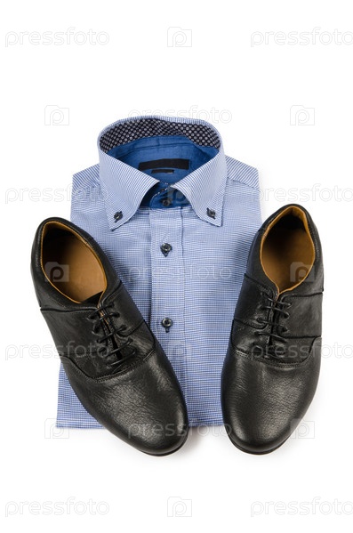 Рубашка и ботинки на белом фоне