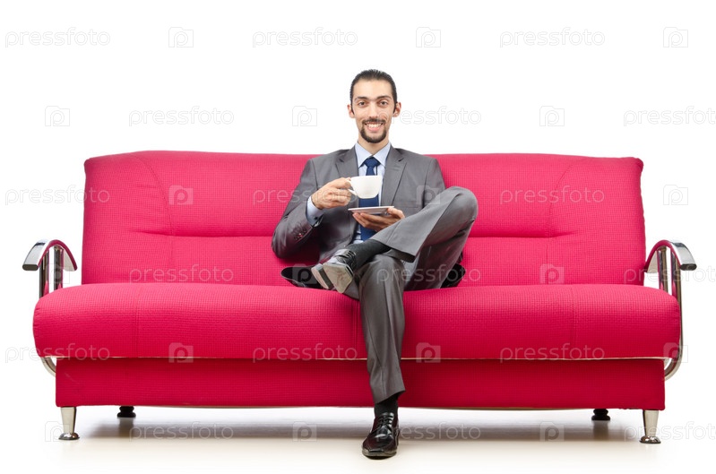 Молодой человек, сидящий на диване
