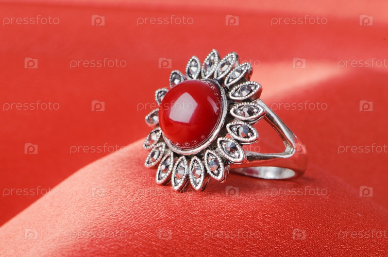 Кольцо на красном фоне