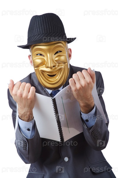 Деловой мужчина в маске на белом фоне