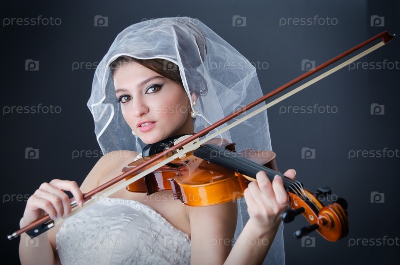 Молодая красивая невеста играет на скрипке