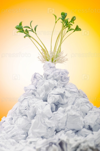 Зеленые ростки, выросшие из кучи макулатуры