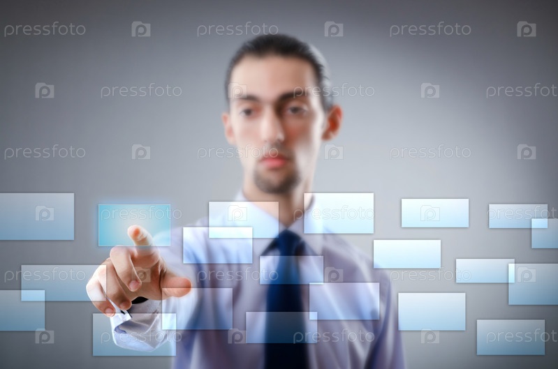 Бизнесмен нажимает виртуальные кнопки