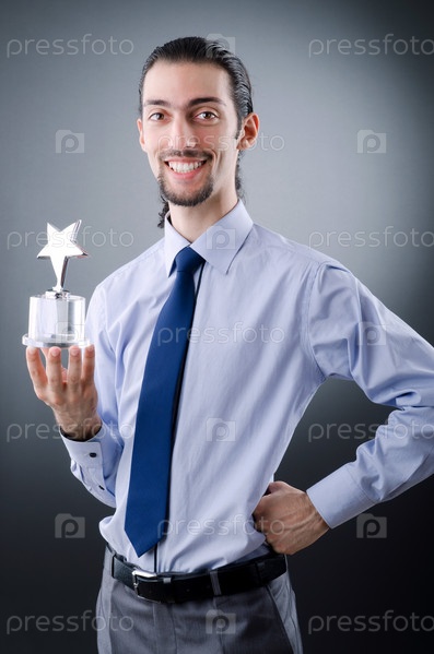 Бизнесмен с наградой в руках