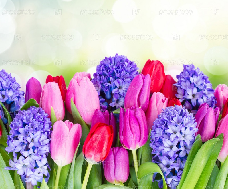 Голубой гиацинт и тюльпаны