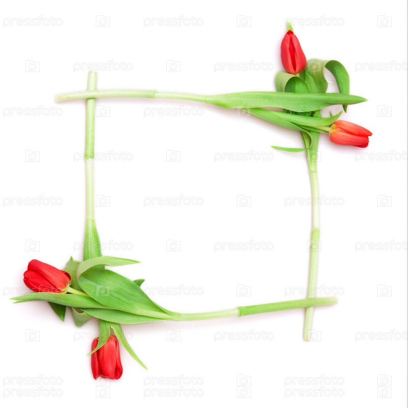 Красные тюльпаны в форме рамки на белом фоне
