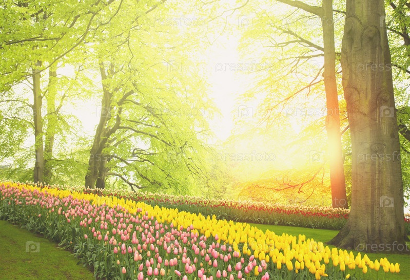 Весенние цветы в саду Голландии