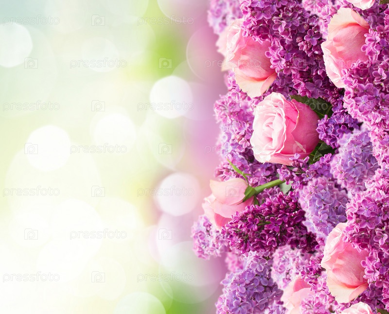 Цветы сирени и розы