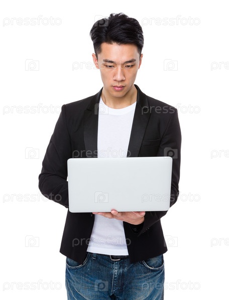 Молодой предприниматель с ноутбуком