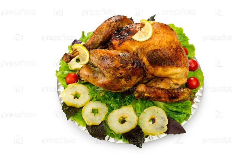 Обжаренная курица, украшенная овощами