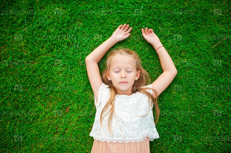 Красивая девочка лежит на траве