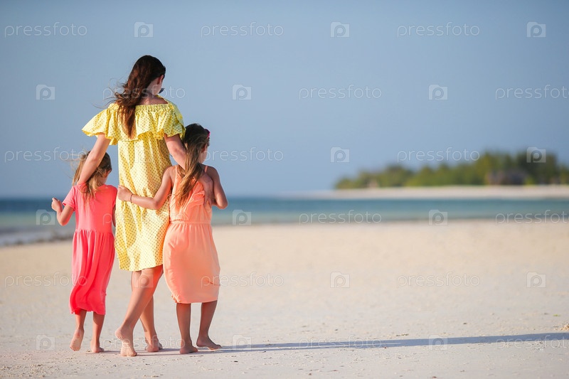 Мать с дочерьми на пляже