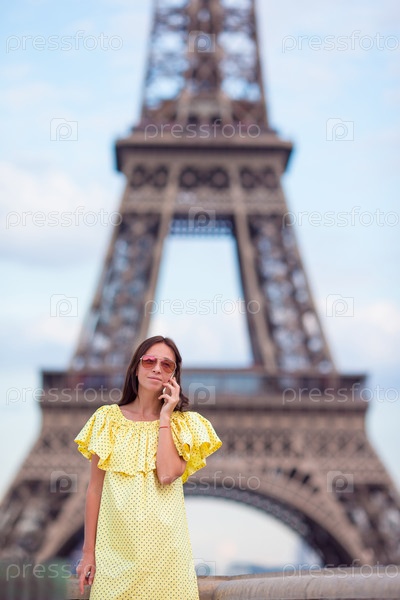 Девушка разговаривает по телефону в Париже