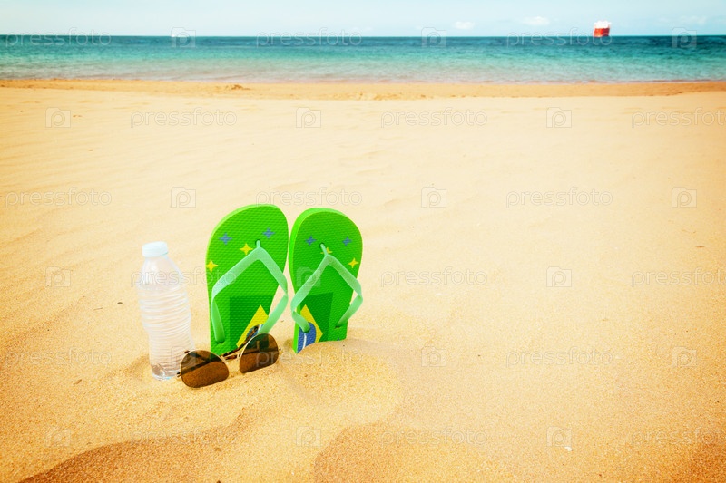 Зеленые босоножки на песчаном пляже