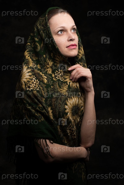 Красивая молодая женщина в платке