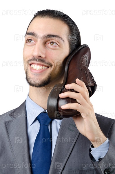 Молодой человек с ботинком в руке