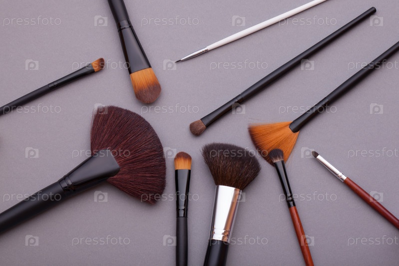кисть на сером фоне много кистей для макияжа